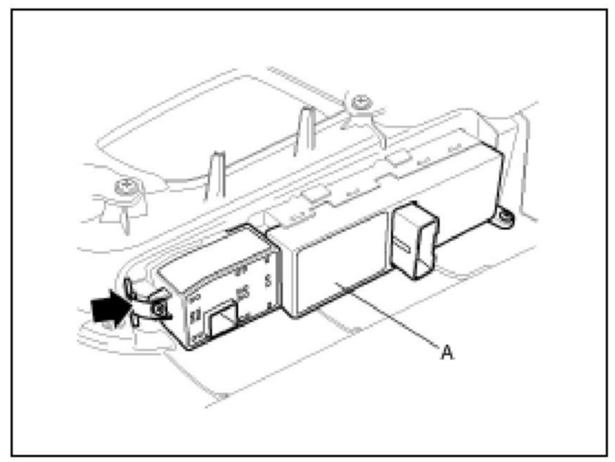2. Remove the power window main switch (A) by pushing the mounting clip of the power window main switch.