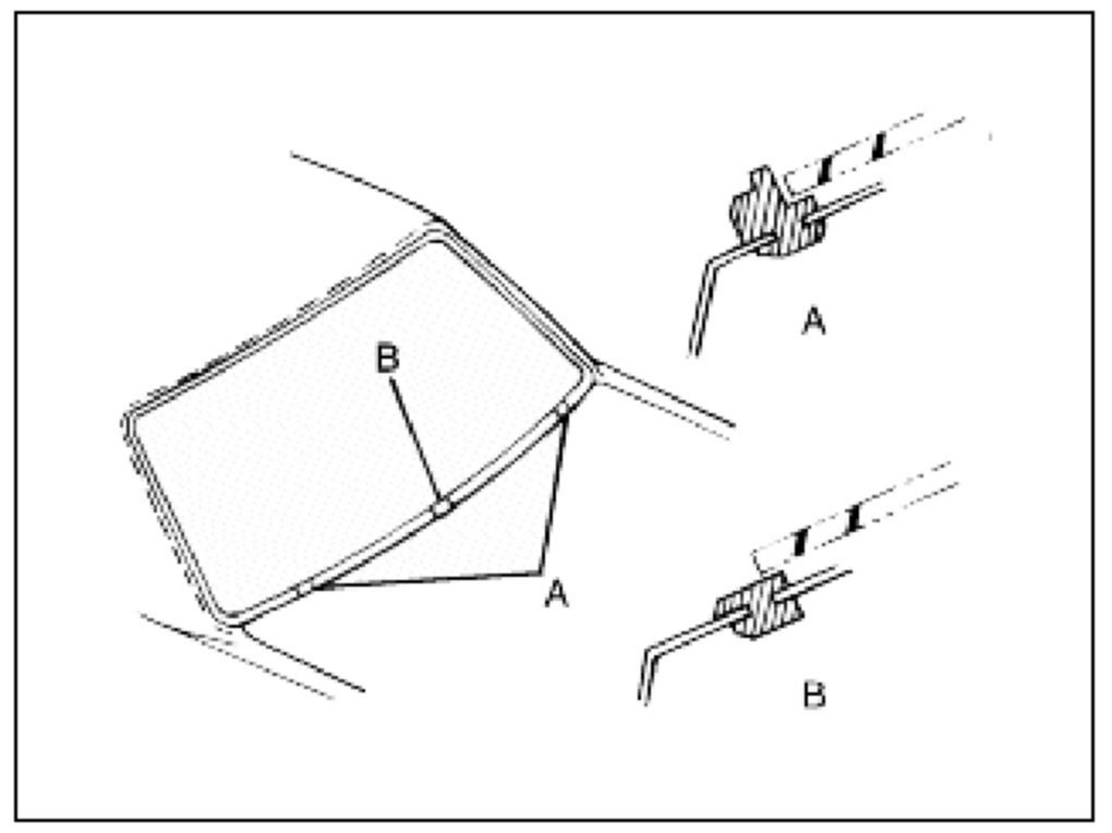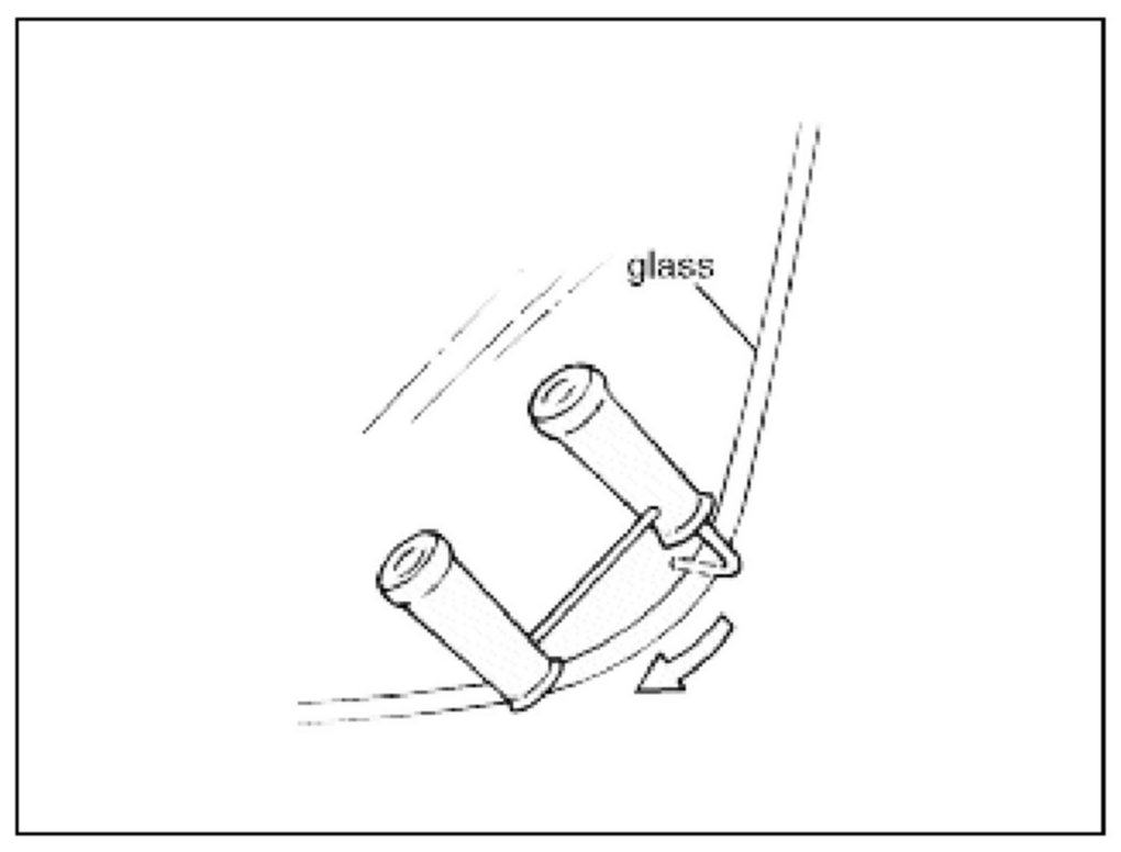 10. Install the glass into the body making sure the glass rests upon the two spacers at the bottom of the windshield.
