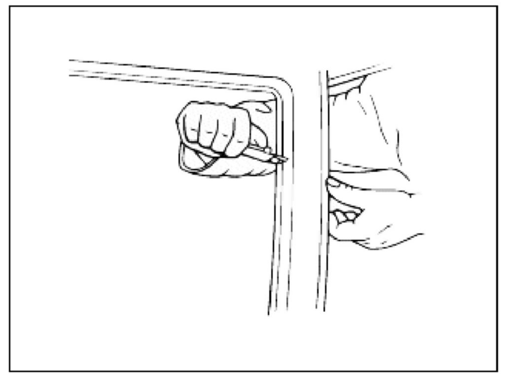 NOTE: Lower both front door windows and leave them in that condition until the vehicle can be put back into service. If the vehicle were completely closed, quickly closing a door could break the seal.