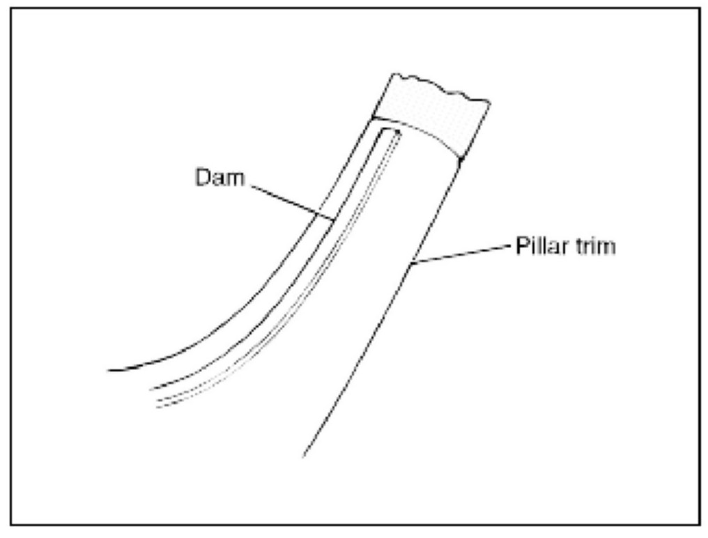 8. Apply the sealant bead to the body just outside the dam. The bead should be slightly higher than the dam.