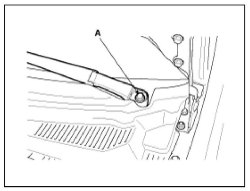 1. Remove the windshield wiper arm and blade after removing a nut (A).