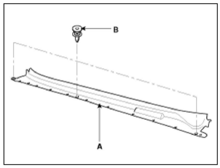 2. Remove the weather strip then remove the cowl top cover (A) after removing 3 clips (B).