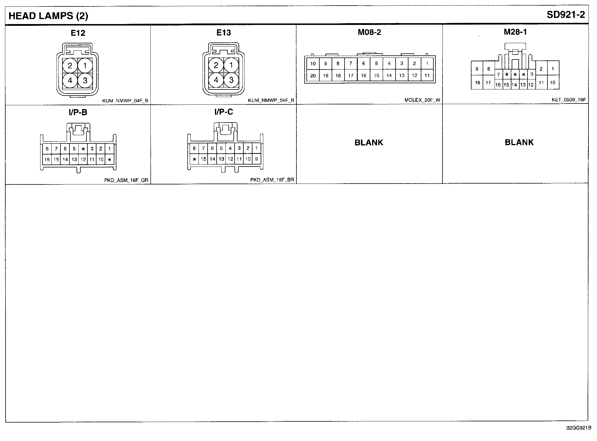 Head Lamps Connector Pin Outs: