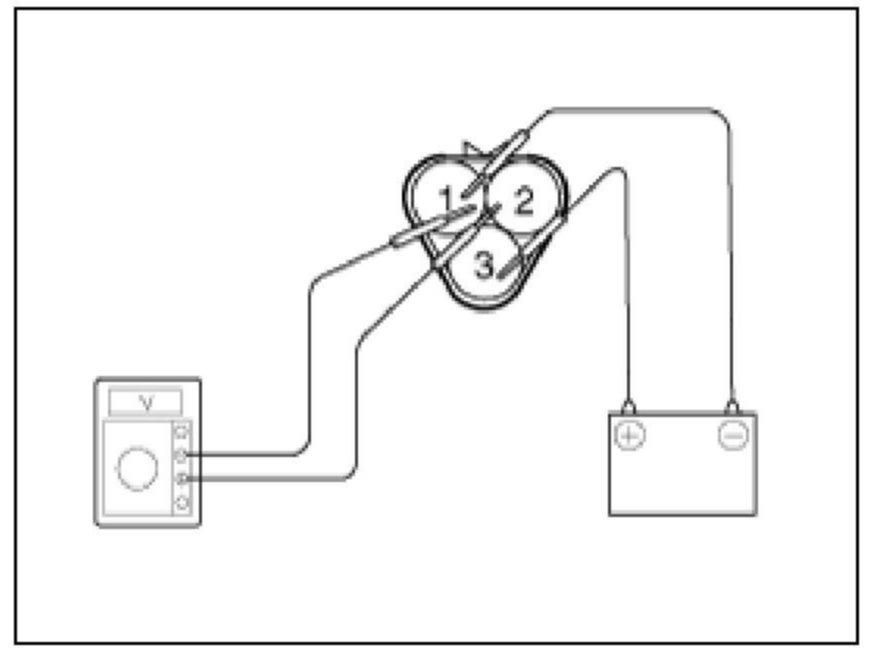 4. Check that there is voltage change from approx. 0 V to 11 V or more between terminals 1 and 2.