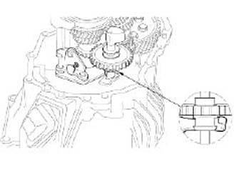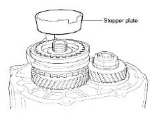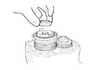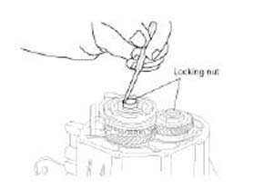 11. Remove the fifth speed gear after removing the locking nut on the output shaft using the special tool(09495-33000).