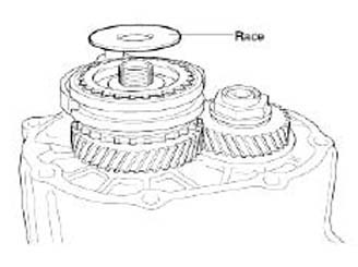 27. Remove the output shaft bearing outer race.