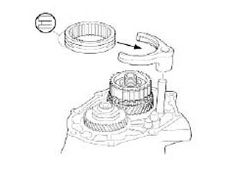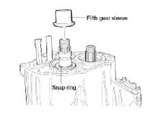 9. Remove the fifth synchronizer sleeve and the 5th shift fork.