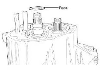 17. Remove the output shaft bearing outer race and the space.