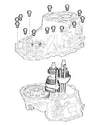 15. Remove the transaxle case mounting bolts(14EA) and then the transaxle case.