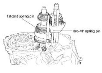 20. Remove the spring pin of 3rd-4th gear shift fork.