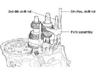 21. Remove the shift rail & fork for 3rd-4th & 5th-Rev.