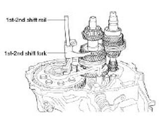 22. Remove the shift rail & fork for 1st-2nd.