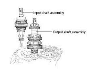 24. Pull out the input shaft from the clutch housing inclining the output shaft.