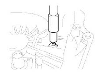 4. Remove the spring pin of the fifth speed shift fork using the special tool(09414-11000).