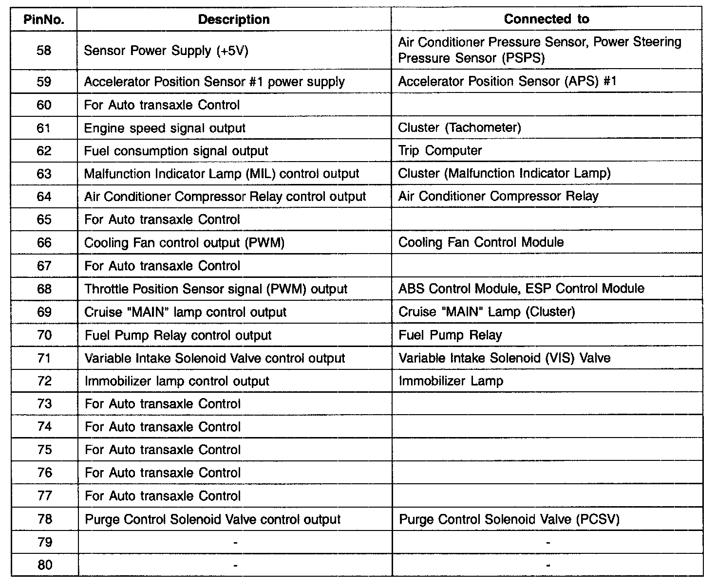 PCM TERMINAL INPUT/OUTPUT SIGNAL - CONNECTOR [C144-A]