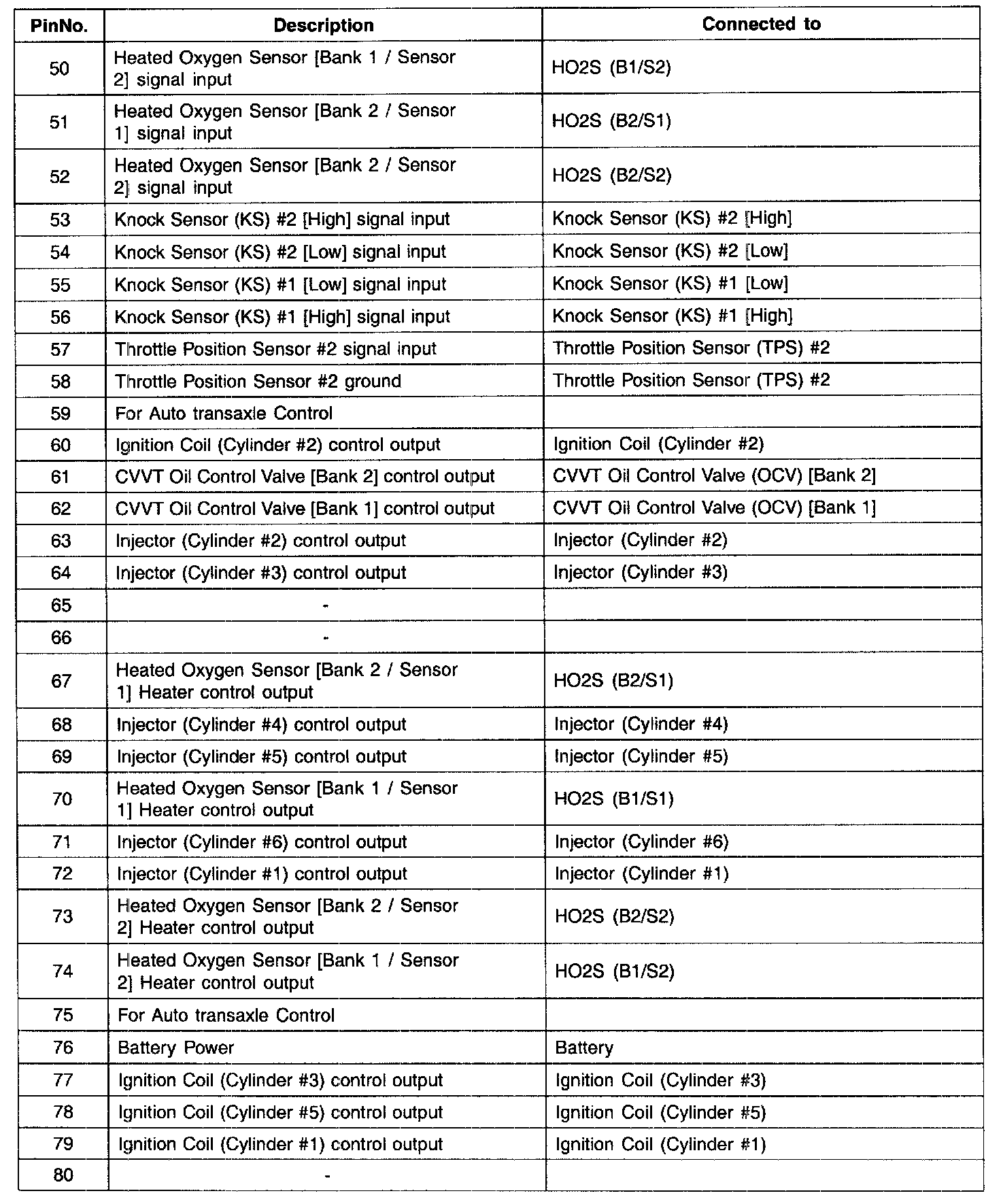 PCM Terminal Input/Output Signal - Connector [C144-A] (Part 2):