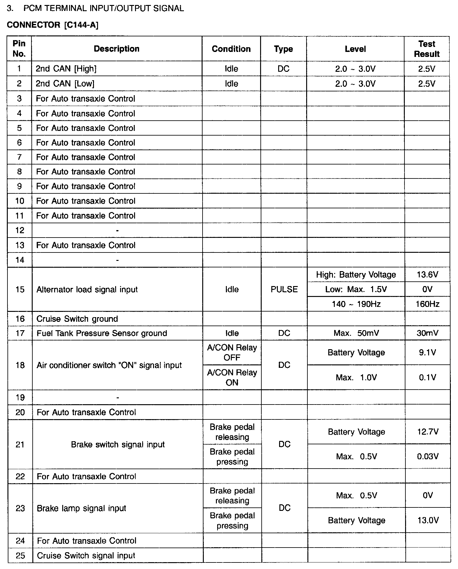 PCM Terminal Input/Output Signal - Connector [C144-A] (Part 3):
