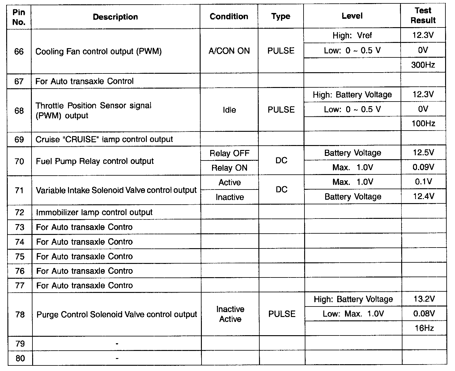 PCM Terminal Input/Output Signal - Connector [C144-A] (Part 4):