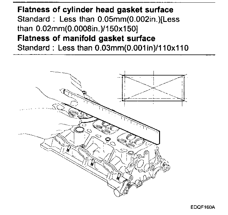 Using a precision straight edge and feeler gauge, measure the surface contacting the cylinder block and the manifolds for warpage.