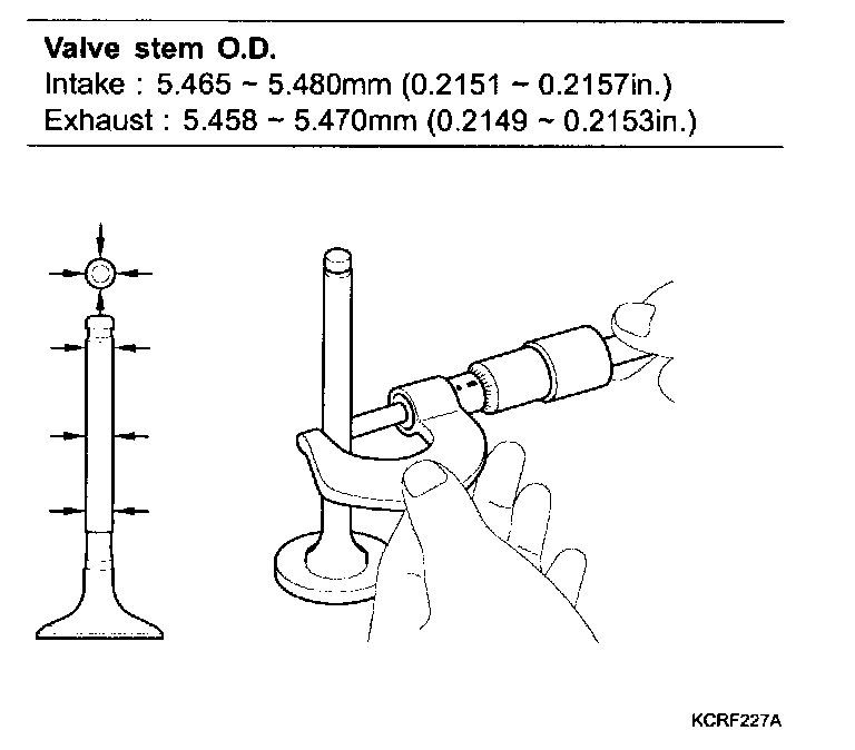 2) Using a micrometer, measure the diameter of the valve stem.