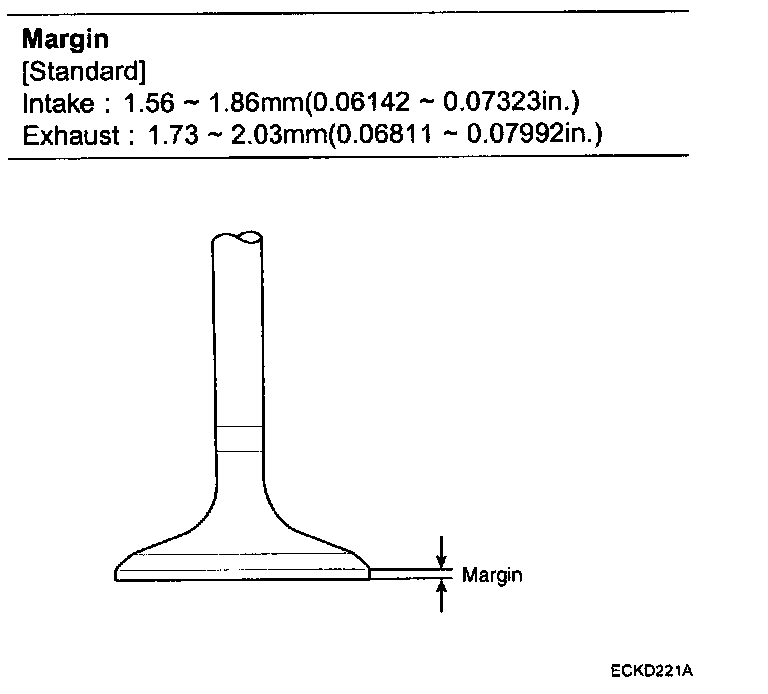 If the margin thickness is less than minimum, replace the valve.