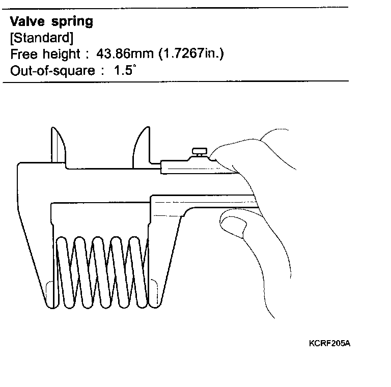 2) Using vernier calipers, measure the free length of the valve spring.