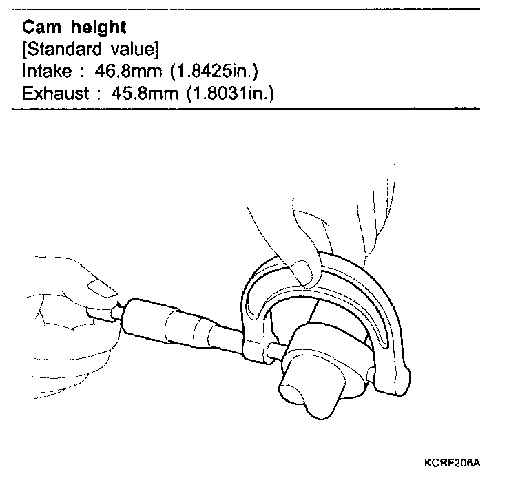 Using a micrometer, measure the cam lobe height.