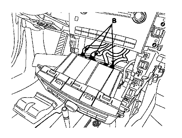 6. Disconnect the connector(B), and then remove the A/C controller.