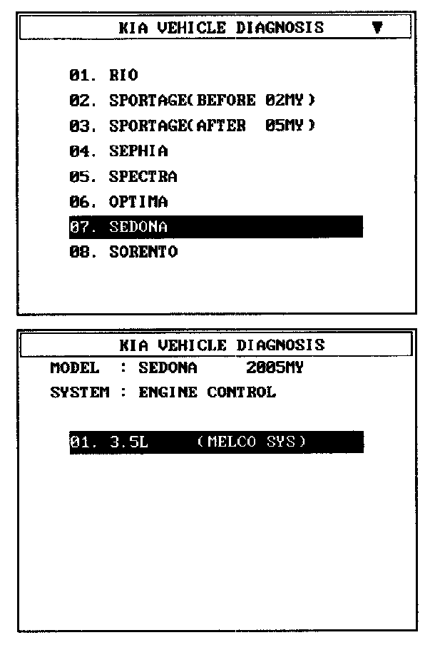 1. Select "Vehicle" and "Engine" (For example, SEDONA 3.5L V6).