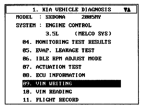 VIN PROGRAMMING PROCEDUREVIN (Vehicle Identification Number) is a number that has the vehicle's information (Maker, Vehicle Type, Vehicle Line/Series, Body Type, Engine Type, Transmission Type, Model Year, Plant Location and so forth. When replacing a PCM, the VIN must be programmed in the PCM. If there is no VIN in PCM memory, the fault code (DTC P0630) is set.