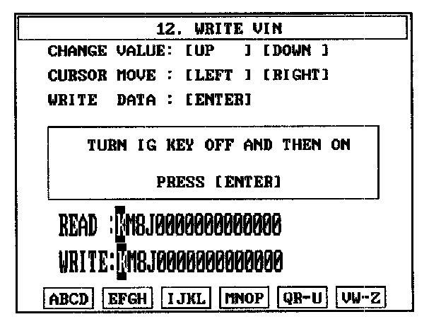 4. Write the VIN with cursor, function and number keys.