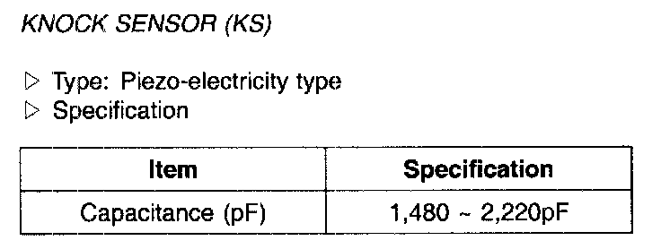 Knock Sensor (KS) - Specification: