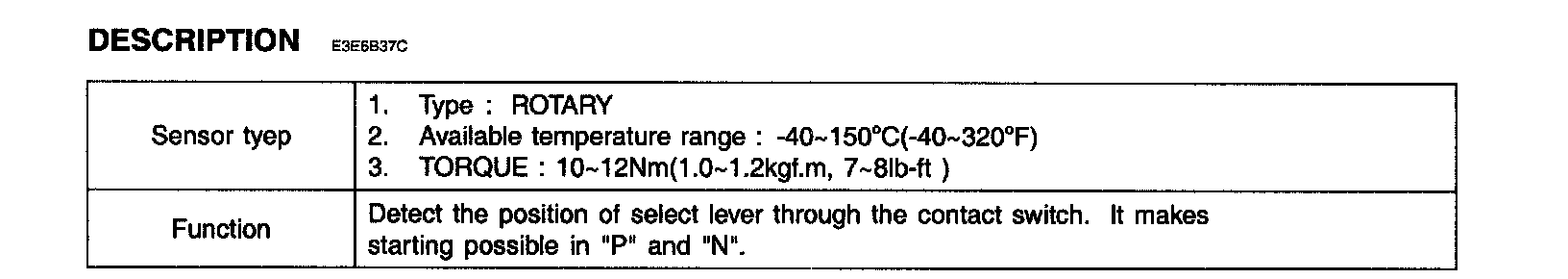 Transmission Position Sensor/Switch: Description and Operation