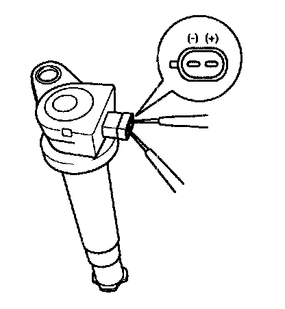 Measure the primary coil resistance between terminals (+) and (-).