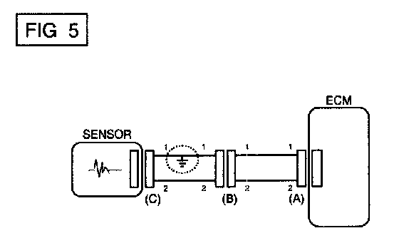 a. With each connector still connected, measure the voltage between the chassis ground and terminal 1 of each connectors (A), (B) and (C) as shown in [FIG. 4].