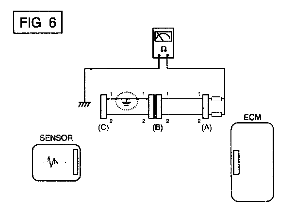 a. Disconnect connectors (A), (C) and measure for resistance between connector (A) and Chassis Ground as shown in [FIG. 6].