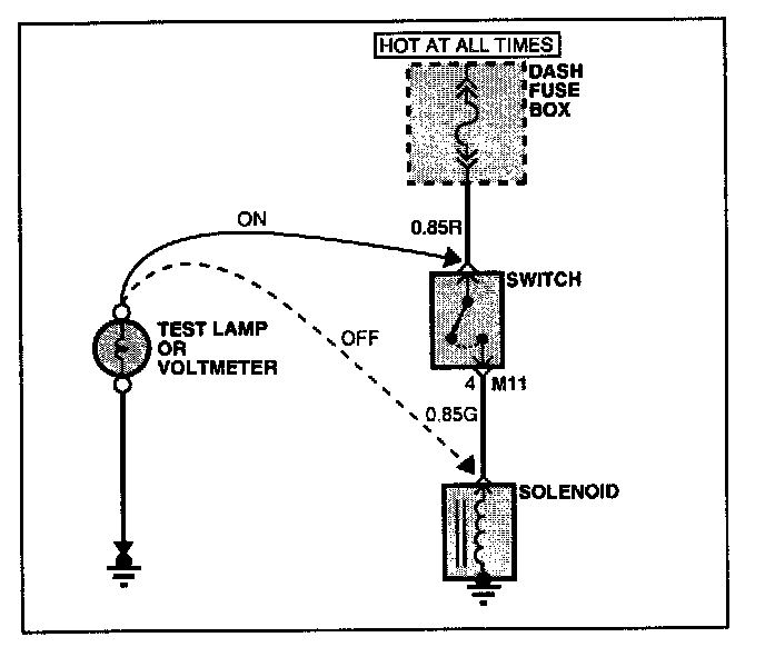 Voltage in these circuits should be tested only with a 10-megaohm or higher impedance DVOM. Never use a test lamp on circuits that contain solid state modules. Damage to the modules may result.