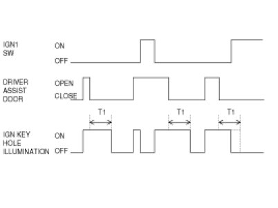 (2) The "ON" state for ignition keyhole illumination is delayed 10 seconds when the door is closed as in Step 1).