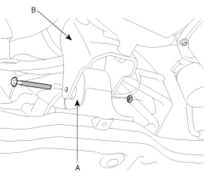 23. Disconnect the bracket(B) from the rear roll stopper(A).