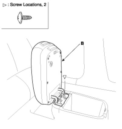 2. After loosening the armrest mounting screws, remove the armrest (B).