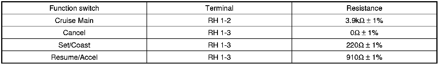 2. Measure resistance between terminals on the control switch when each function switch is ON (switch is depressed).