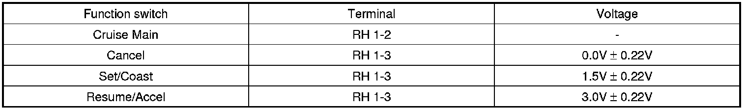 2. Measure voltage between terminals on the harness side connector when each function switch is ON (switch is depressed).