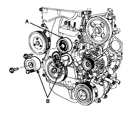 8. Remove the drive belt tensioner (B).