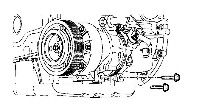 16. Remove the compressor lower bolts.