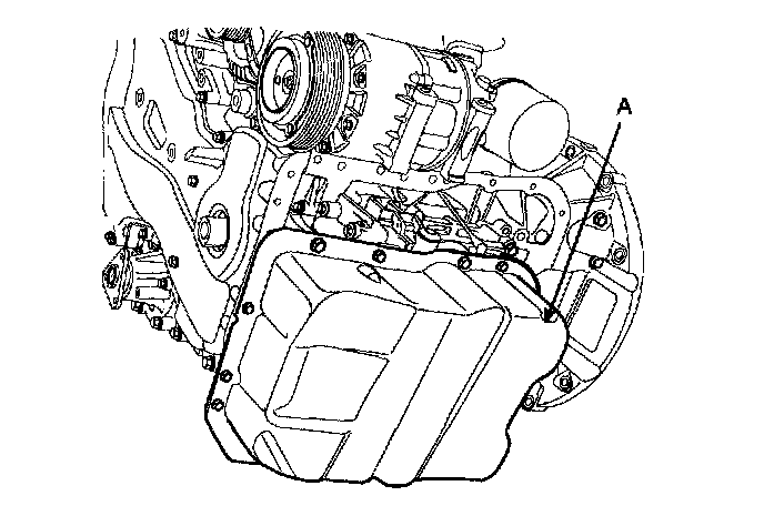 3) Install oil pan (A). Uniformly tighten the bolts in several passes.