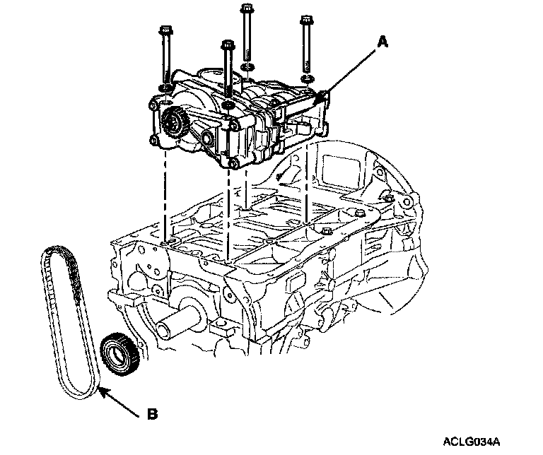 10. Remove the crankshaft pulley (B).