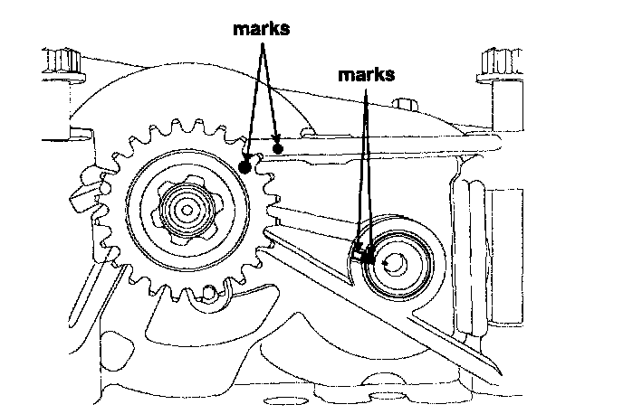 8. After rotating crankshaft 2 revolutions in regular direction (clockwise viewed from front), confirm the timing mark.