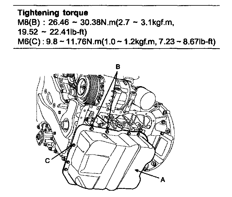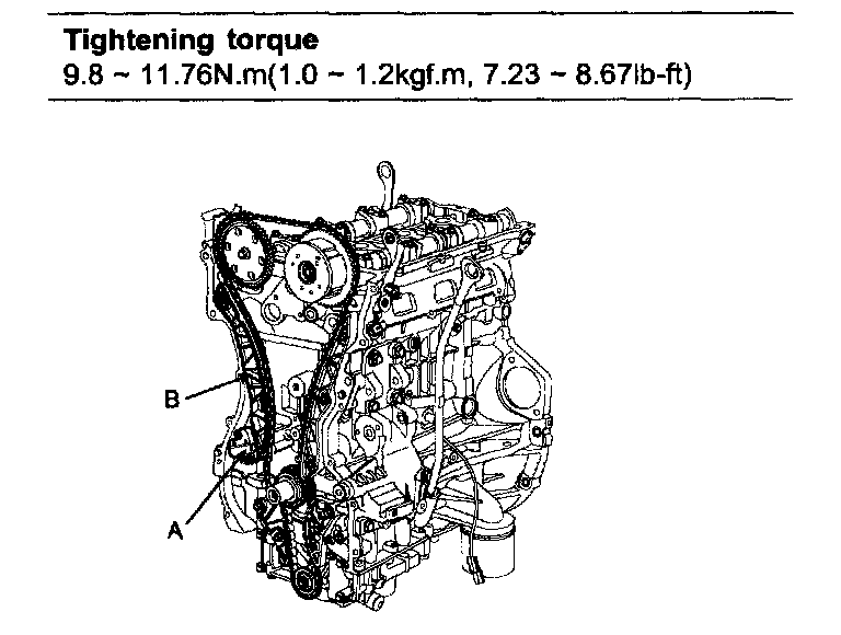Tightening torque 9.8 - 11.76 Nm (1.0 - 1.2 kgf.m, 7.23 - 8.67 ft. lbs.)