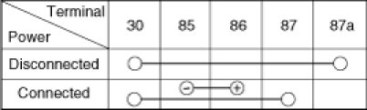 2. There should be continuity between the No.30 and No.87a terminals when power is disconnected.