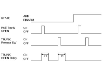 (1) Trunk release relay is turned ON for 0.5s if trunk signal of RKE is received. (Hold mode under ARM)